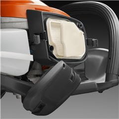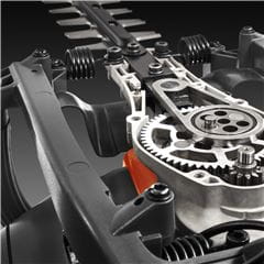 Функция поворота задней рукоятки обеспечивает удобное положение рук оператора, облегчая обработку как верхней, так и боковых части живой изгороди.