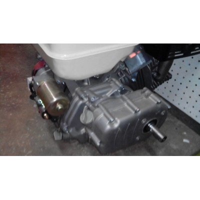 Мотор Stark GX390F-R с понижающим редуктором и центробежным сцеплением. Обороты понижаются 2:1. При оборотах двигателя 3600 об/мин редуктор выдает 1800 об/мин. В основе редуктора шестерни и цепь. Выходной вал редуктора 22 мм под шпонку. Центробежное сцепление срабатывает при достижении 1000 об/мин.