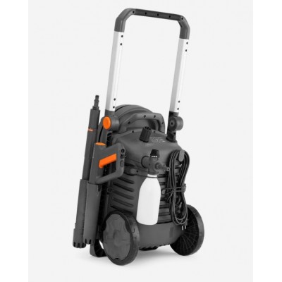 Мойка высокого давления также оснащена большими колесами с мягким протектором, обеспечивающими отличное сцепление на пересеченной местности, спусковым механизмом с низким усилием и складывающейся алюминиевой ручкой для уменьшения пространства, необходимого для хранения.