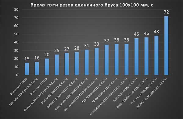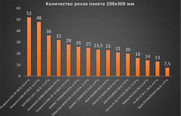 Производительность пилы и ресурс её батареи мы тестируем на распиловке