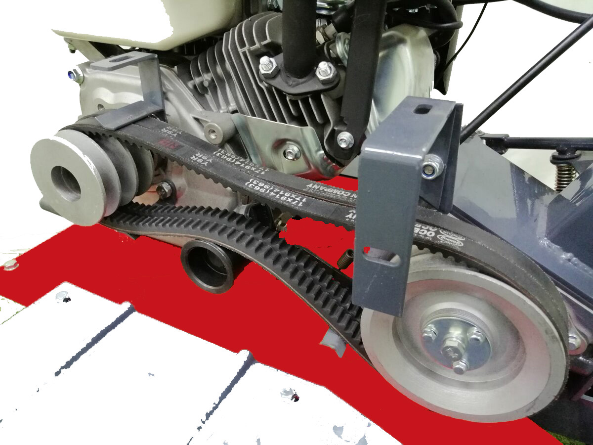 - Надёжный ременной привод (сцепление натяжением ремня). Даёт плавный ход. Лёгкое и недорогое в обслуживании. Выполняет защитную функцию узлов и агрегатов культиватора при его перегрузке.
