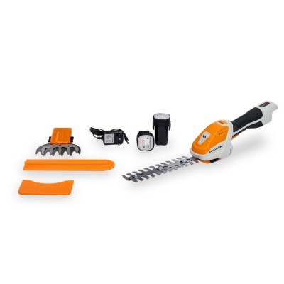 Ножницы оснащены полным комплектом для удобства работы и поставляются с двумя аккумуляторными батареями ёмкостью 1,5 Ач и зарядным устройством.